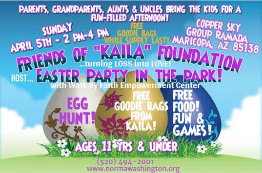We will be hosting the annual Easter Party in the Park where we will be blessing children un10 with FREE Easter Baskets, FREE Food, & Fun (while supply last)! It is our goal to "turn LOSS into LOVE" by putting a smile on the face of children in the Maricopa community and surrounding areas!!!.